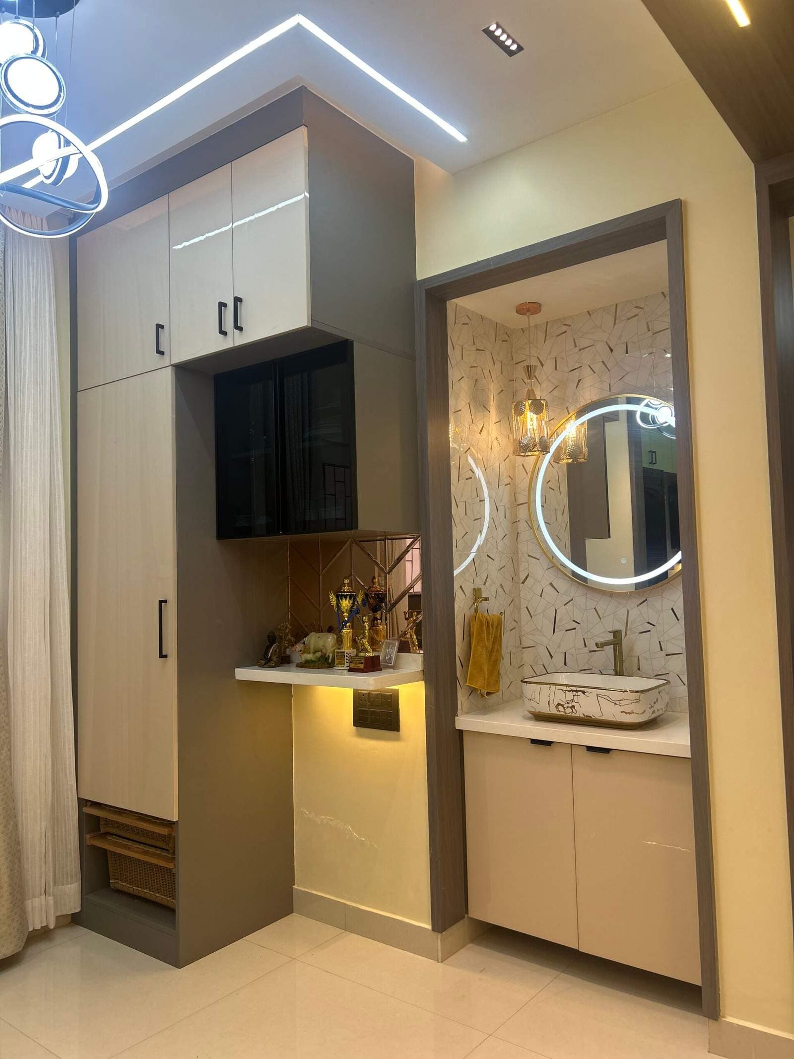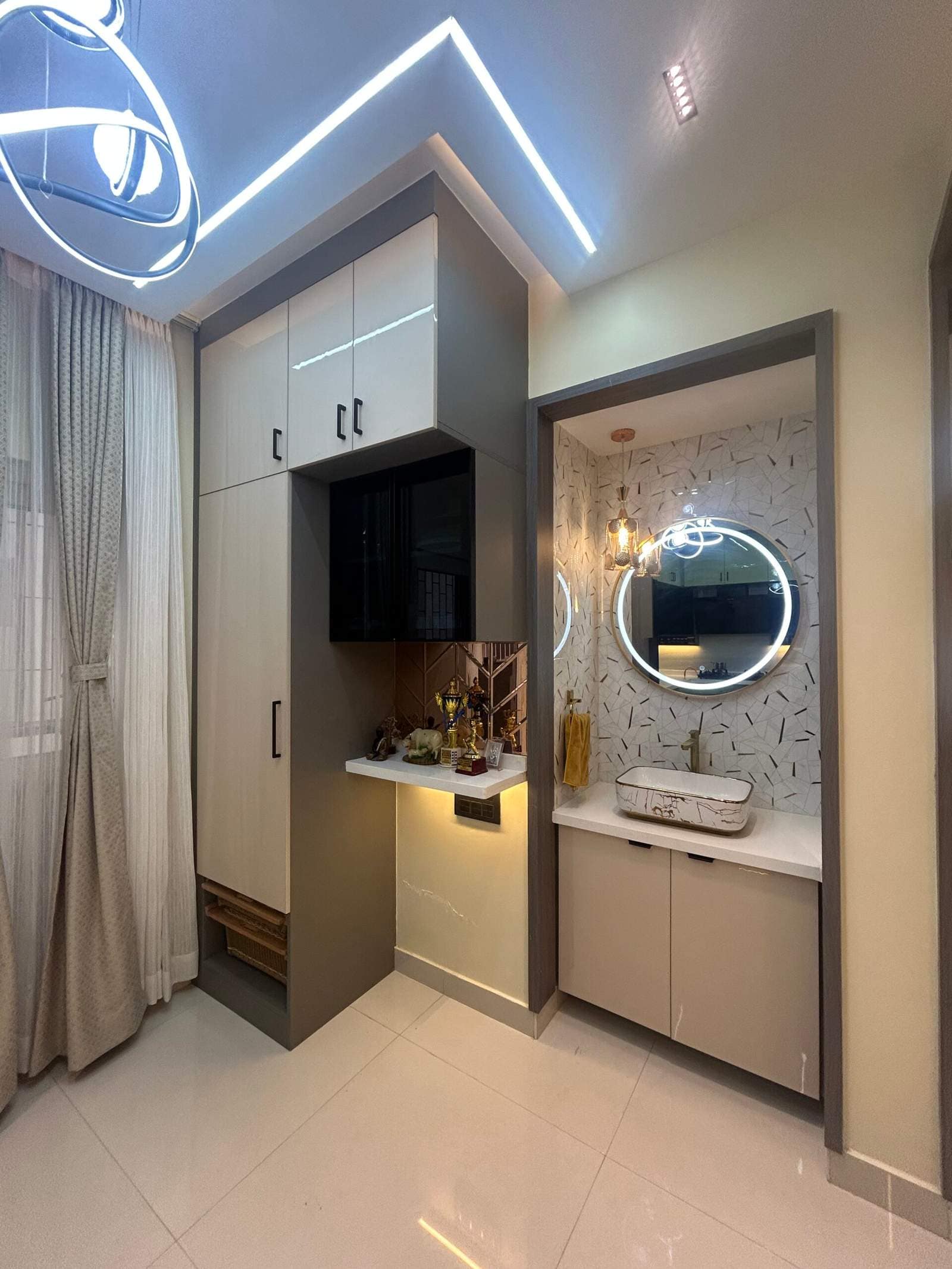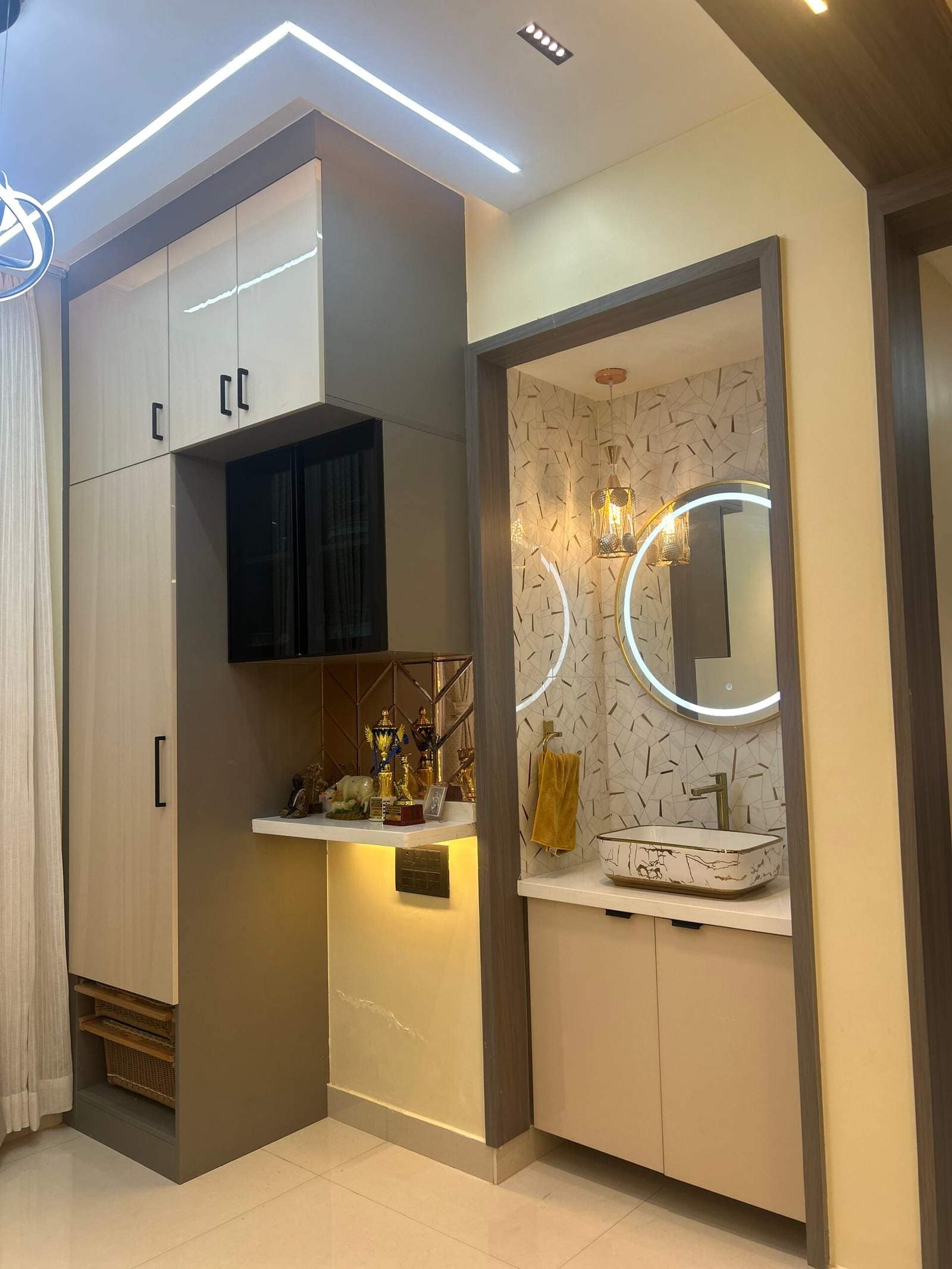 For Suresh’s home, Olangana Design created a modern crockery unit along with an integrated hand wash basin, making it both functional and premium.