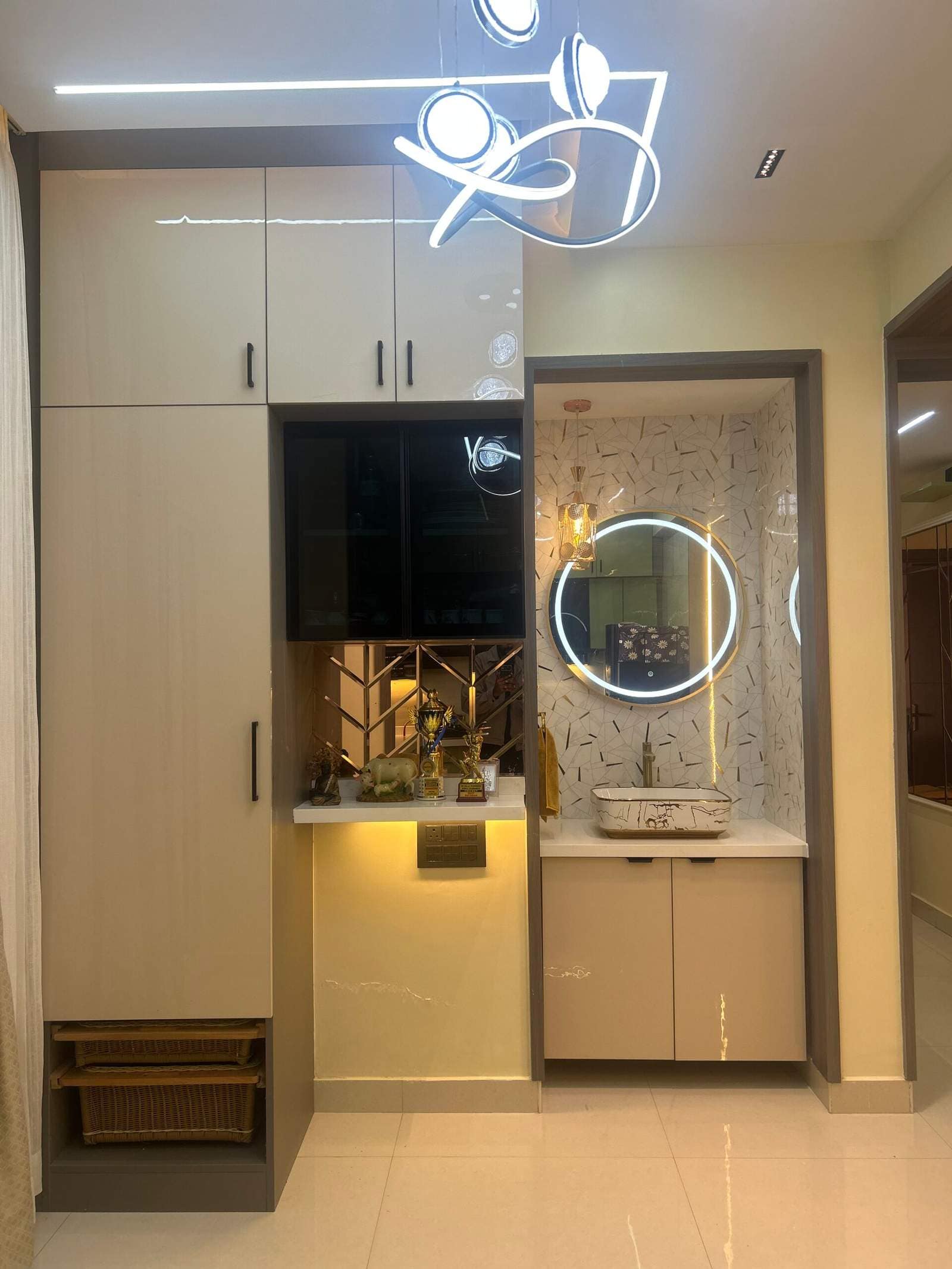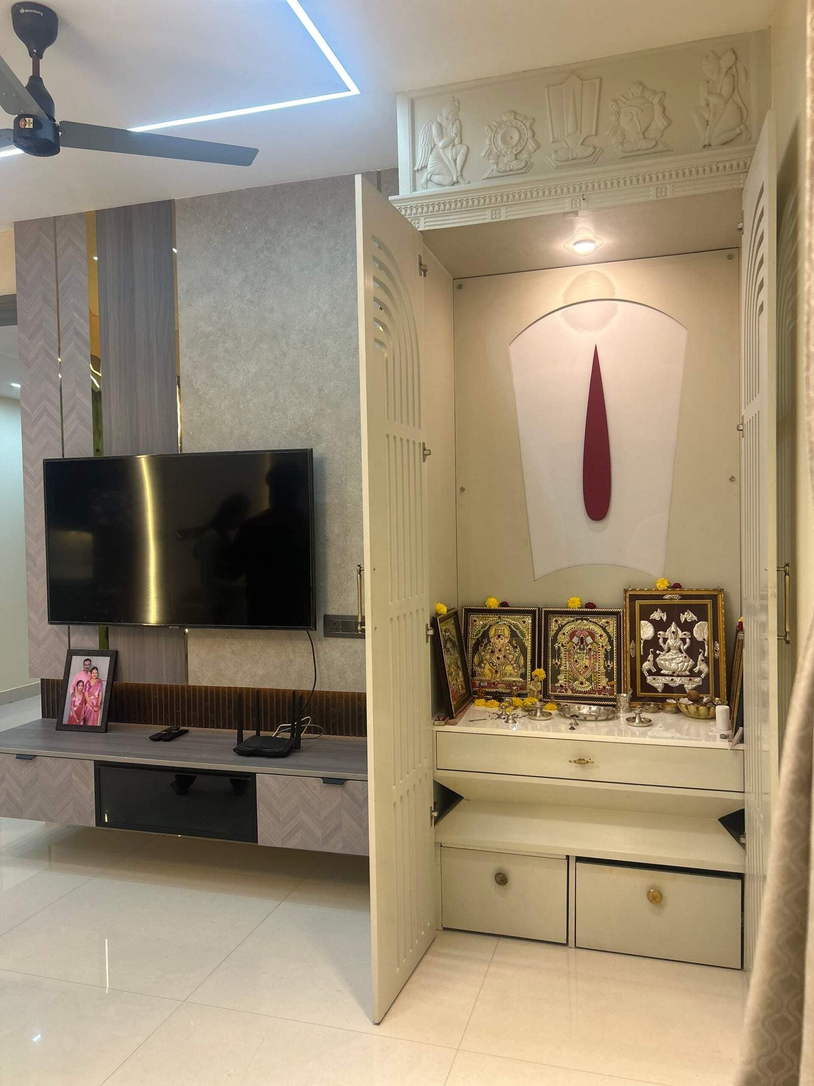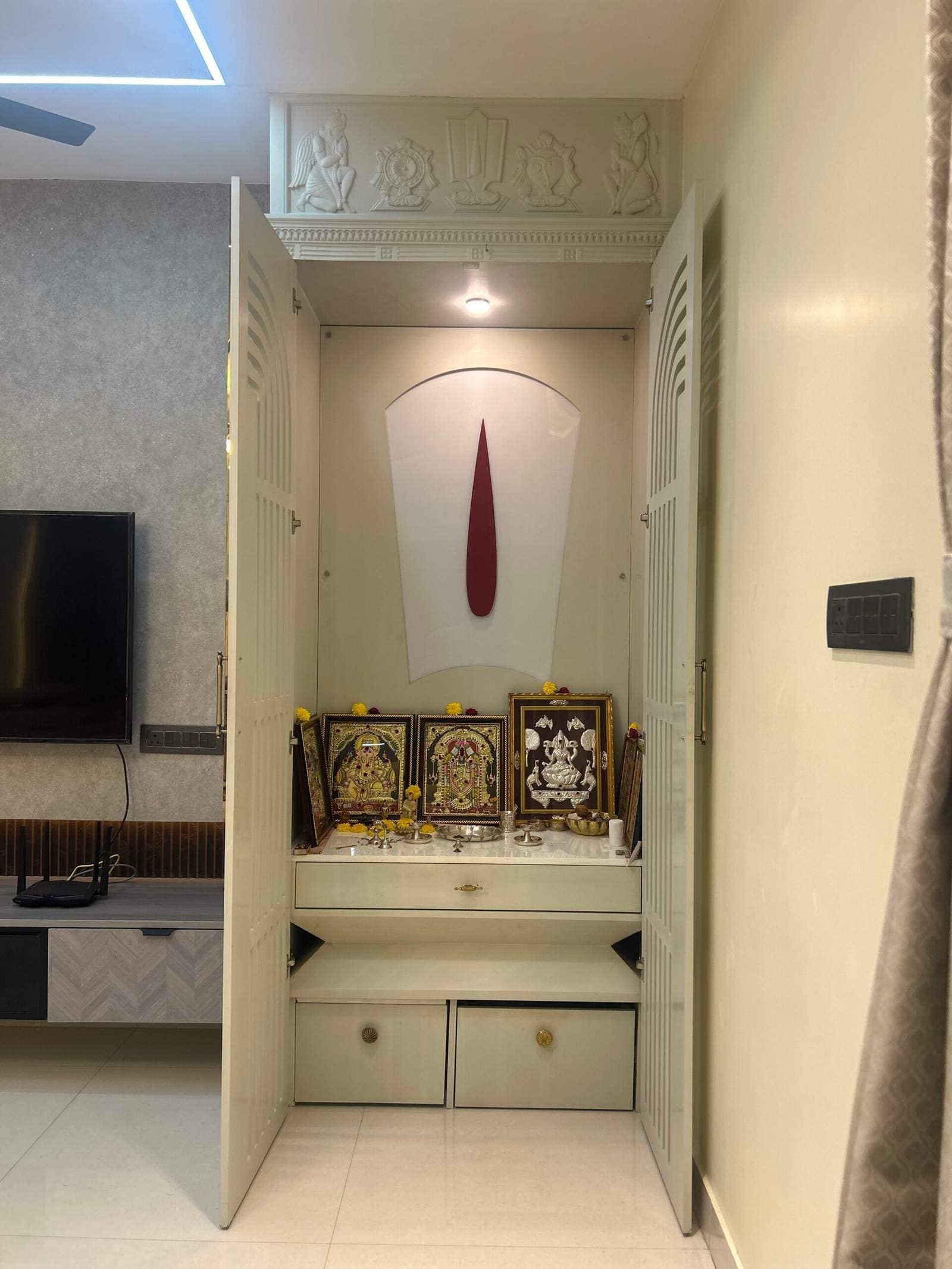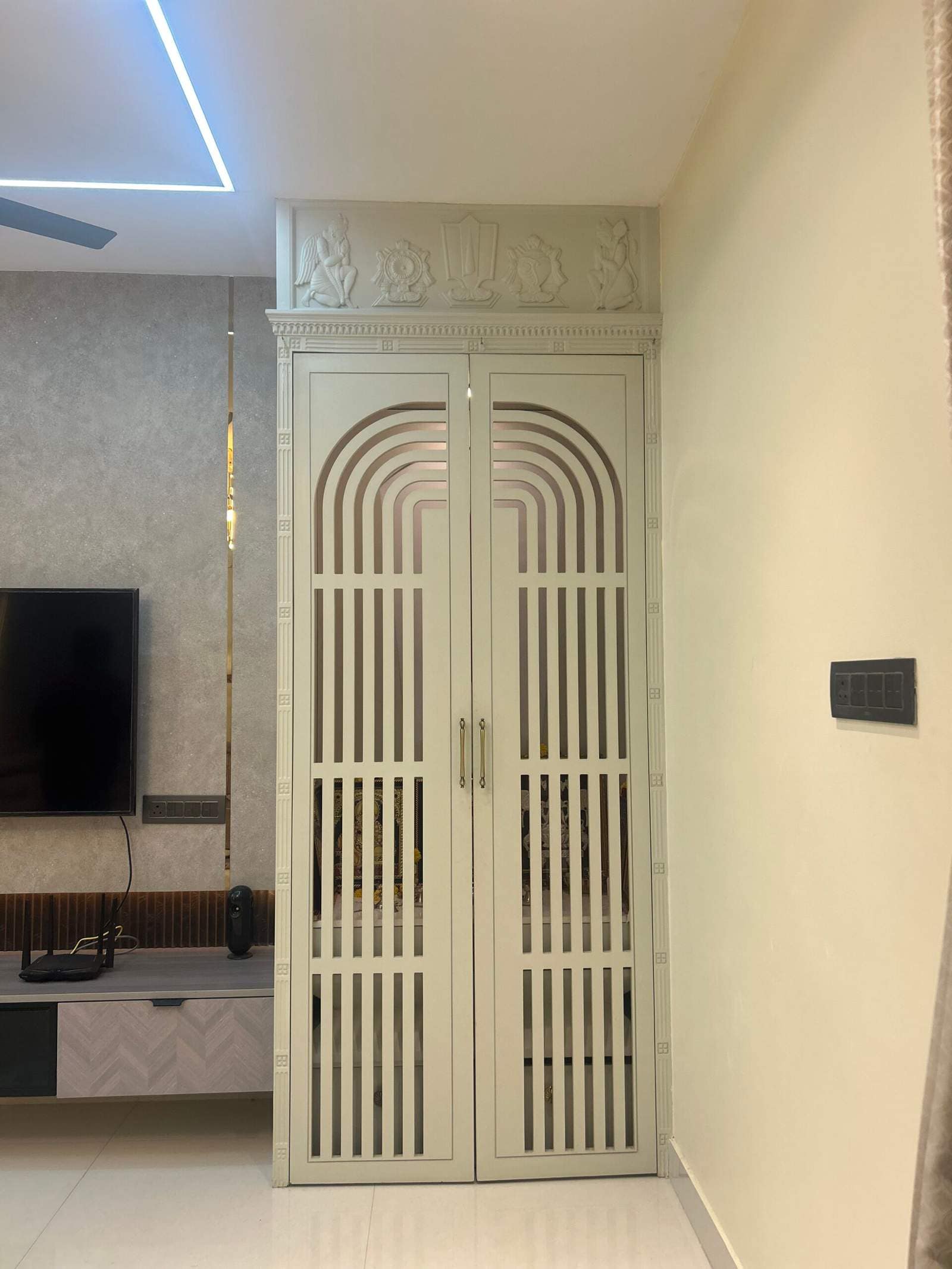 Attached Pooja Room with CNC Cutting & Beige Deco Finish
