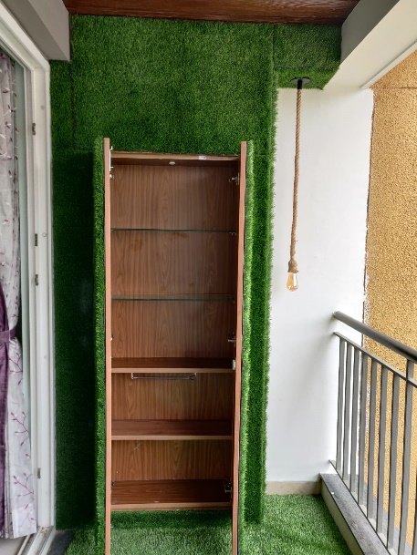 Our designers decided to enhance the beaty of balcony adding unconventional Bar unit, which is initially planned in the living area carpeted in an artificial turf, accompaniments beautiful Bangalore weather turned out be the best spot to hang out with friends.