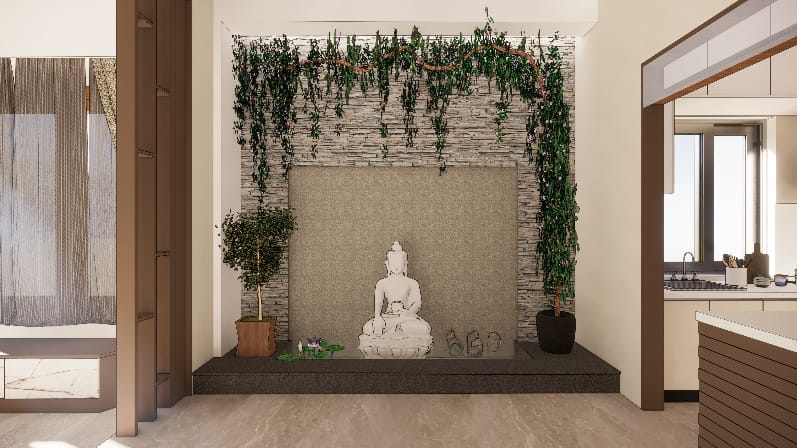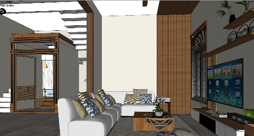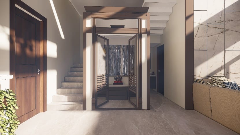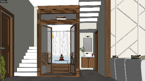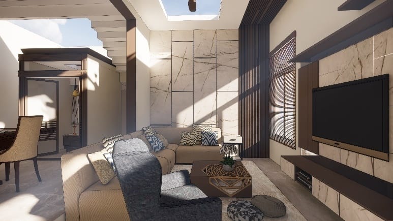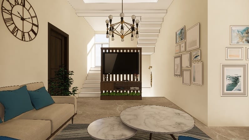 The best part of the house was living it was fun to conceptualize and execute , the use of eco-friendly terra Cotta jail partitions and earthy tone laminate shades and polish for the entire living gives earthy vibes to the space.