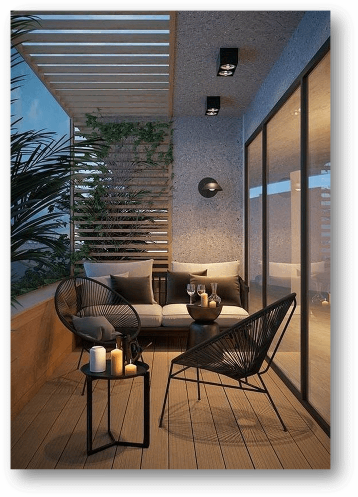 Another very important aspect of balcony design is the lighting. Much like the indoor living space, your balcony must be sufficiently illuminated while creating a beautiful setting for your tranquillity.