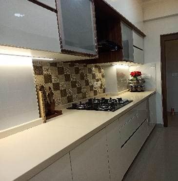 Our top-class design team visualised a perfect parallel kitchen following the same theme as per the discussion with clients, civil work was crucial, So much of electrical work to be done, kitchen counter and back tiles had to be replaced and the idea was to make a simple handle less kitchen.