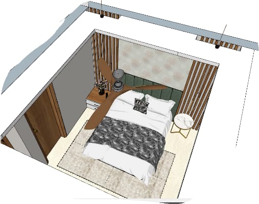 Small room with ample of lighting around, this room was dedicated to their son ,we were bit confused with their requirements as they had asked us design a working table, two people sleeping place and a wardrobe in such compact space.
