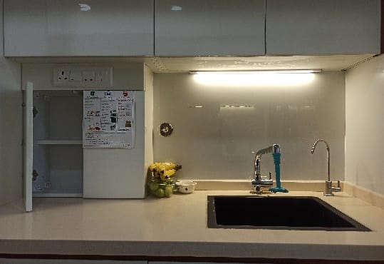 Our top-class design team visualised a perfect parallel kitchen following the same theme as per the discussion with clients, civil work was crucial, So much of electrical work to be done, kitchen counter and back tiles had to be replaced and the idea was to make a simple handle less kitchen.