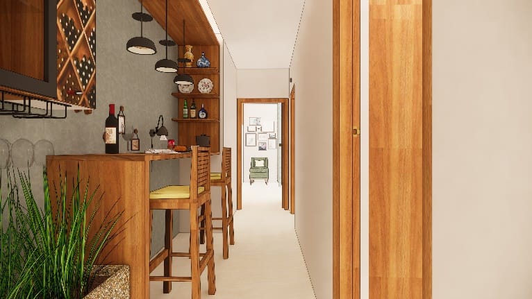 We decided to do something casual, so the idea was doing a bar unit as per the discussion and even the place was suitable for the idea which we were visualising, we being the Best Interior designer in Bangalore follow perspective designing formula to understand our client requirements and design.