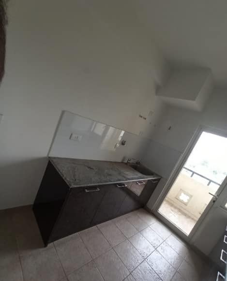 The kitchen is equipped with tall unit beside the refrigerator partitioned into small pantry units, specifically designed for OTG appliances such as microwave oven.