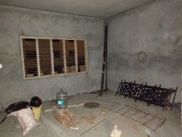 Wide open living with bare shell wall and dining unfolds from the entry space.